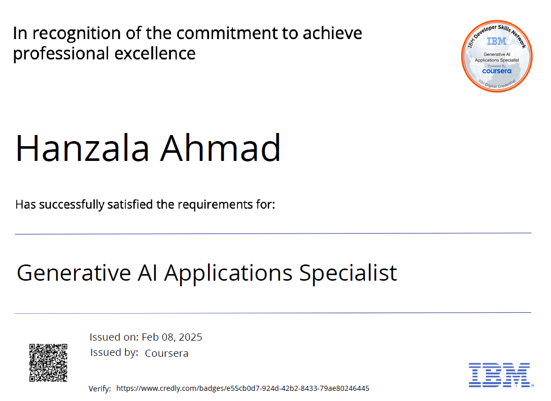 Specialized certification focusing on Generative AI applications, demonstrating expertise in building and deploying AI-powered solutions for real-world applications.